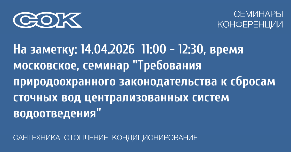 Вебинар: Требования природоохранного законодательства к сбросам сточных вод централизованных систем водоотведения