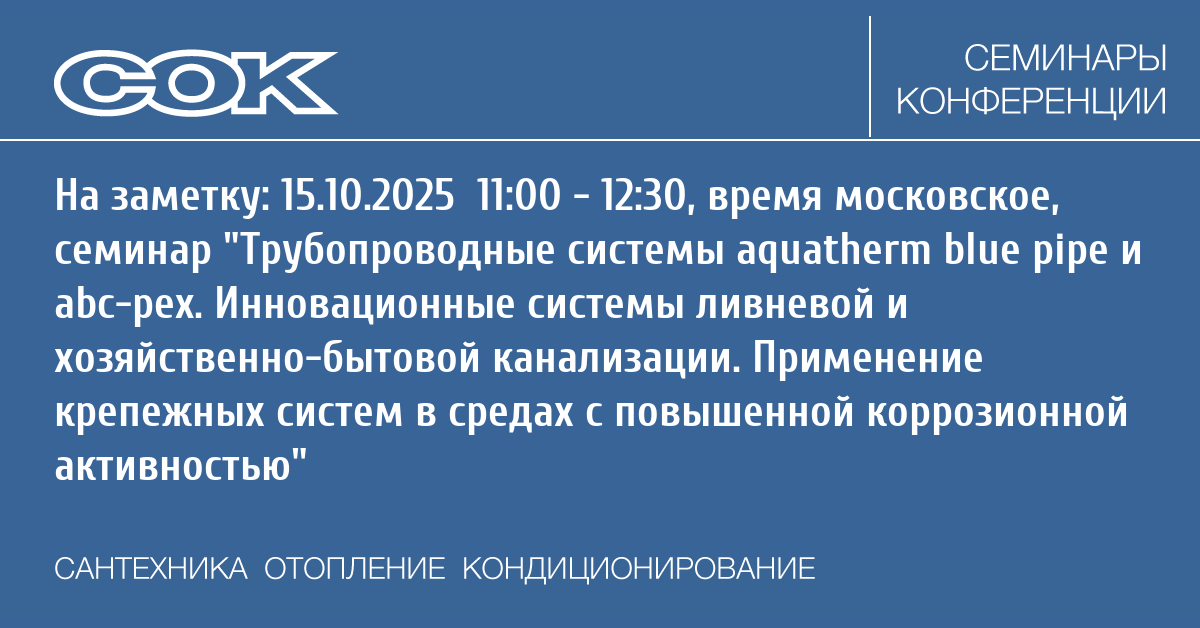 Вебинар: Трубопроводные системы aquatherm blue pipe и abc-pex. Инновационные системы ливневой и хозяйственно-бытовой канализации. Применение крепежных систем в средах с повышенной коррозионной активностью