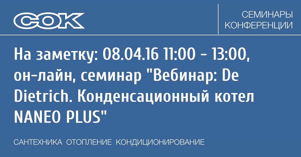 Компания «Терморос» рада пригласить вас принять участие в вебинаре: De Dietrich. Конденсационный котел NANEO PLUS. Изменения в конструкции, настройка и управление.