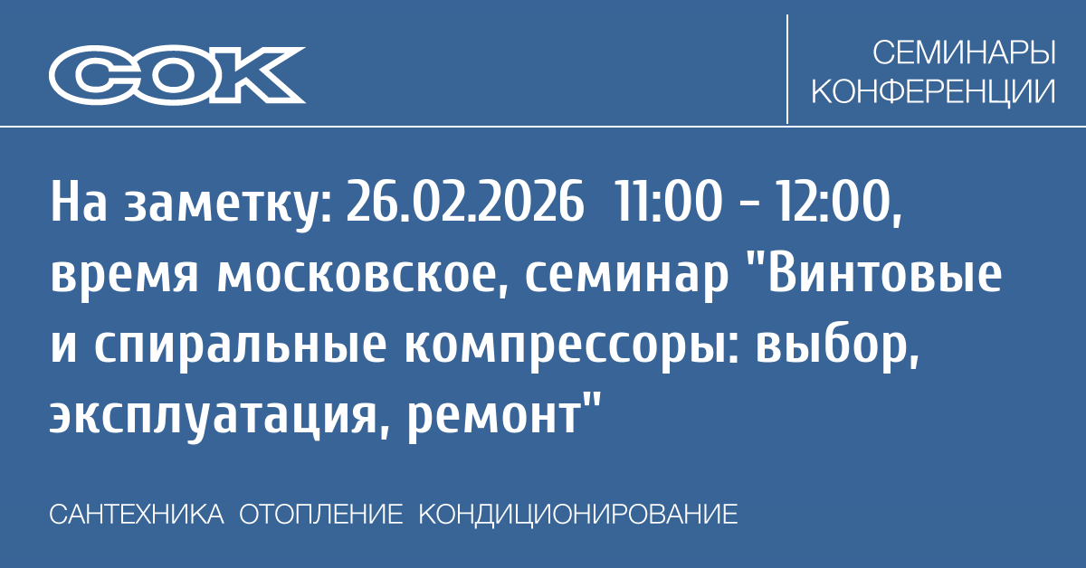 Вебинар: Винтовые и спиральные компрессоры: выбор, эксплуатация, ремонт