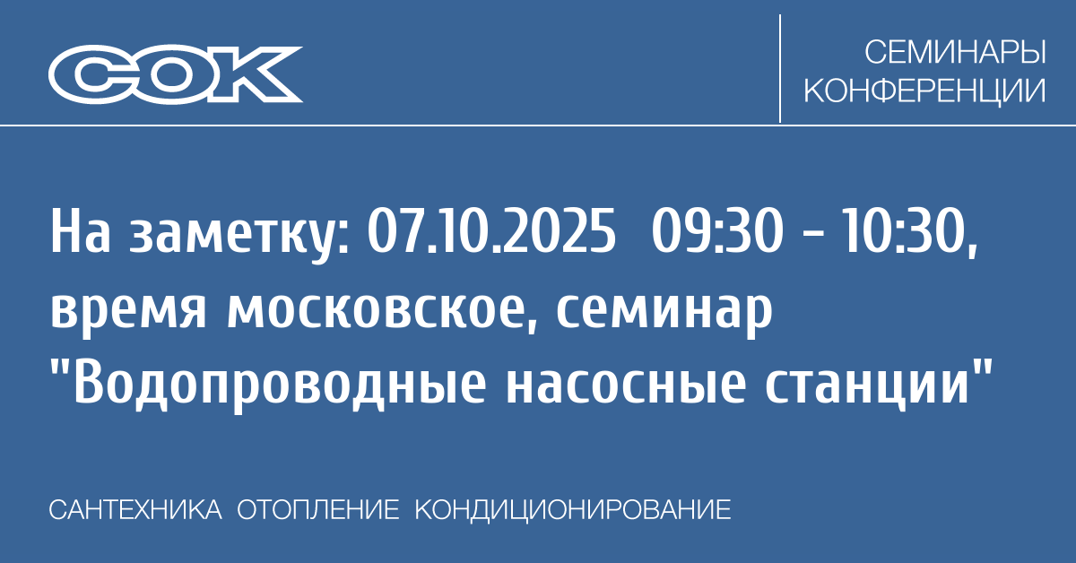 - 07.10.2025 09:30 - 10:30 Webinar Водопроводные насосные станции