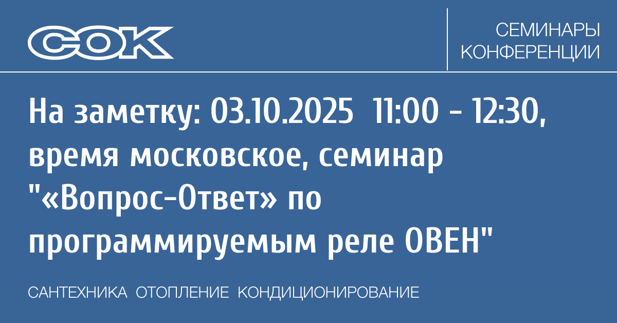- 03.10.2025 11:00 - 12:30 Webinar «Вопрос-Ответ» по программируемым реле ОВЕН