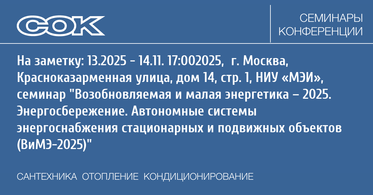 Conference: Возобновляемая и малая энергетика – 2025. Энергосбережение. Автономные системы энергоснабжения стационарных и подвижных объектов (ВиМЭ-2025)