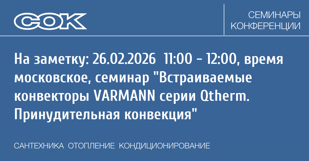 - 10.03.2026 09:30 - 10:30 Вебинар Системы хозяйственно-питьевого водоснабжения зданий