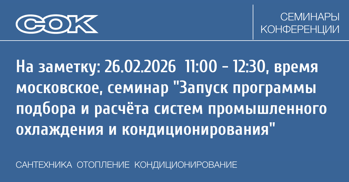 Вебинар: Запуск программы подбора и расчёта систем промышленного охлаждения и кондиционирования