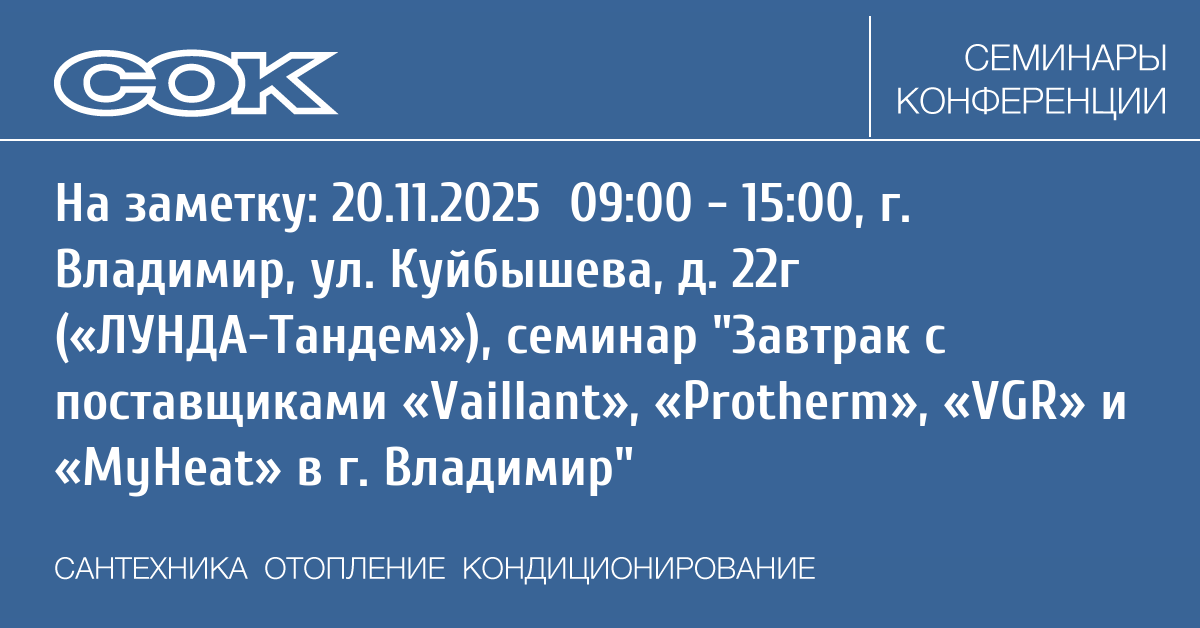 Seminar: Завтрак с поставщиками «Vaillant», «Protherm», «VGR» и «MyHeat» в г. Владимир